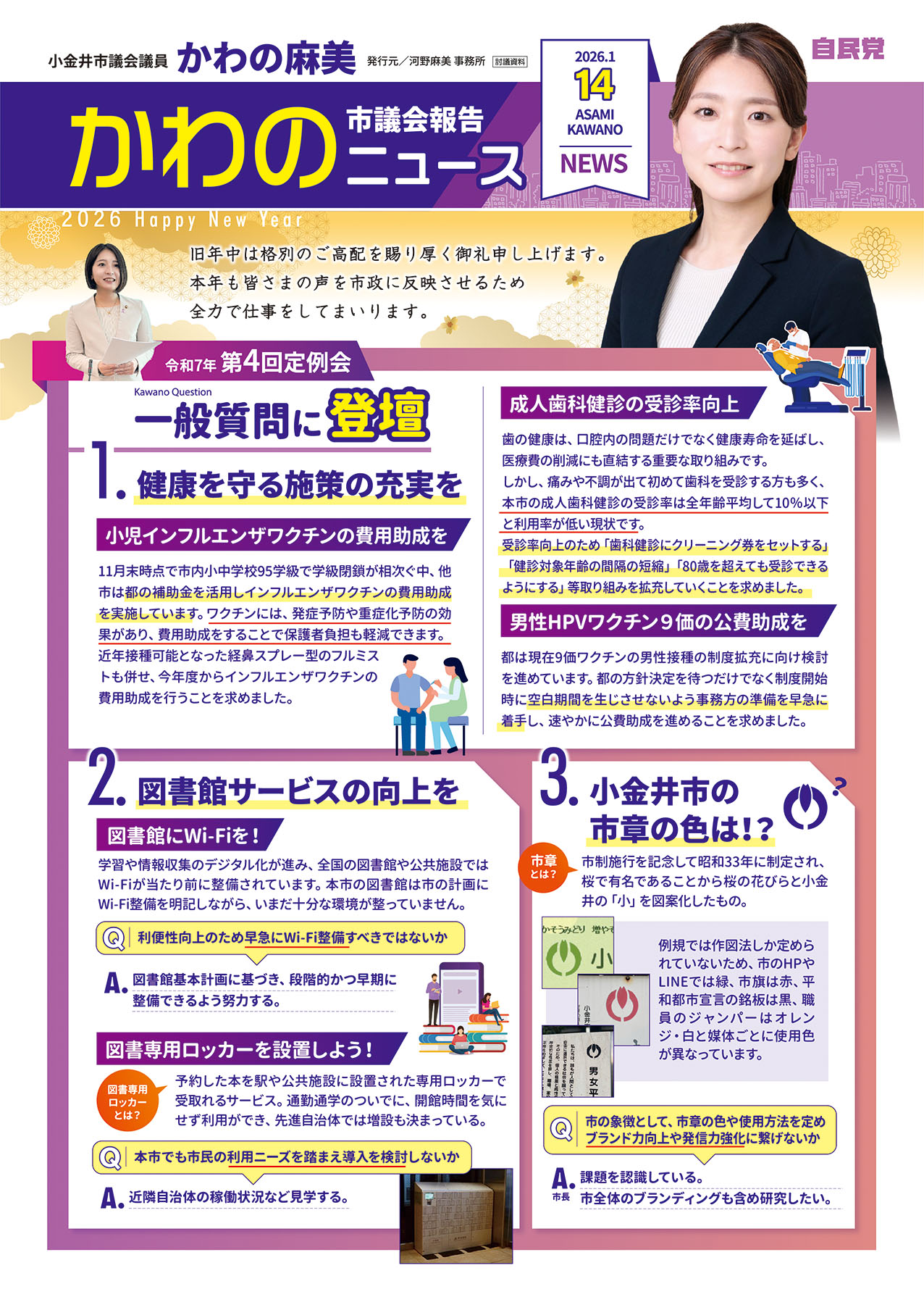 会派「自由民主党小金井」の幹事長。